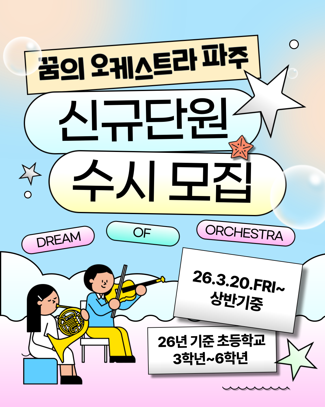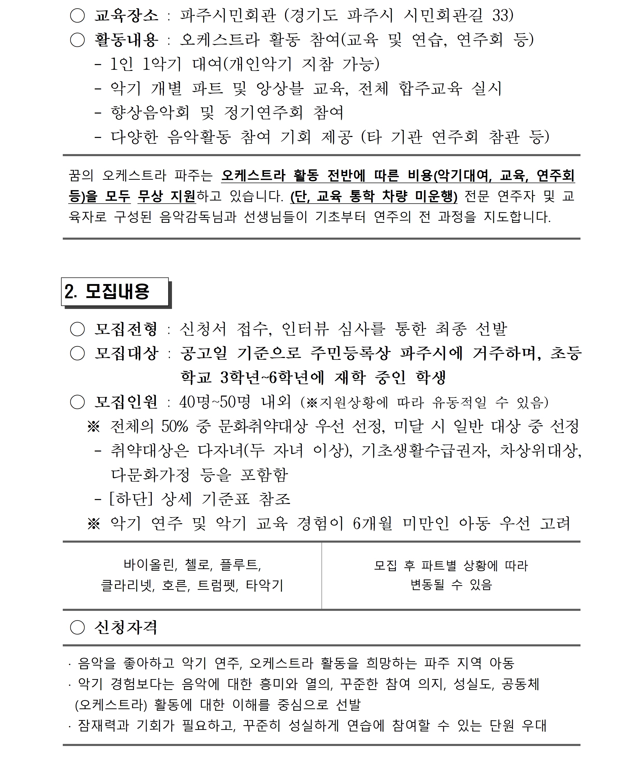 [파주문화재단 공고 제2026-17호] 2026 꿈의 오케스트라 파주 단원 수시모집 공고