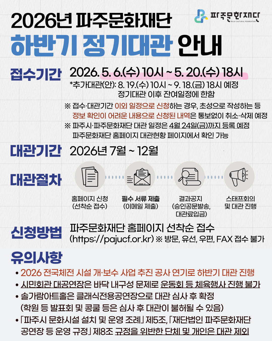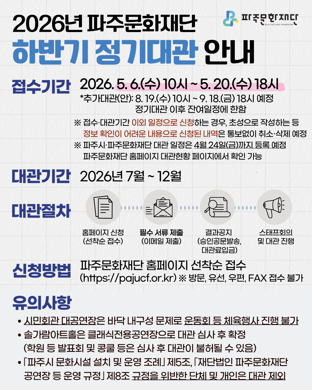 파주시 시민회관으로 대공연장, 소공연장, 다목적실 등을