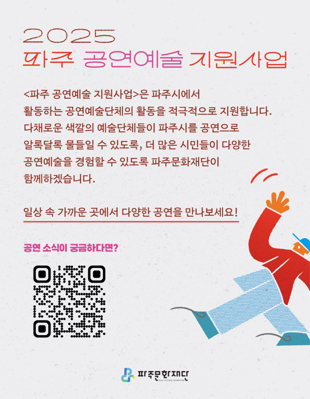 공연예술 장르의 예술단체를 지원하는 「파주 공연예술 지원사업」과 생활예술단체 활동을 지원하는 「파주 예술로(路) 지원사업」,