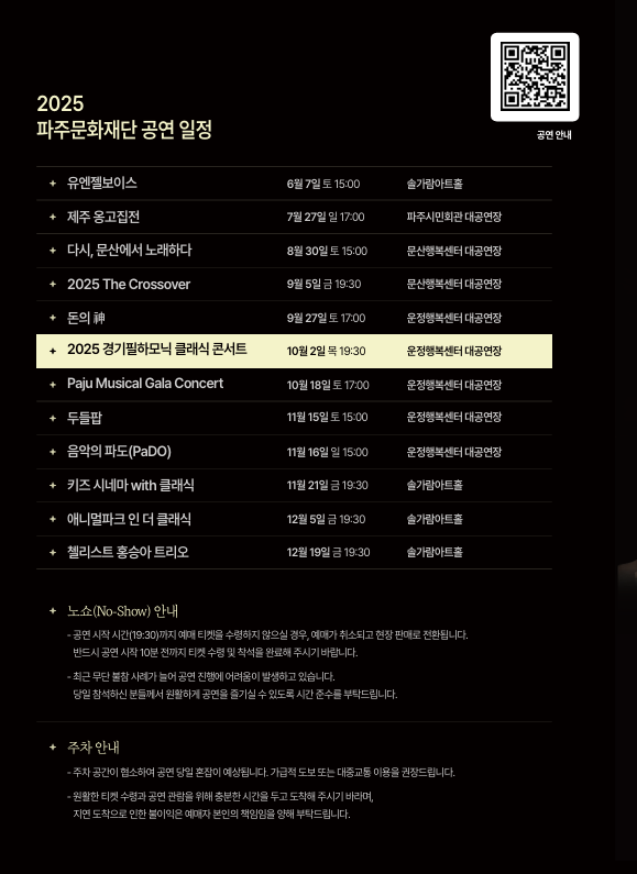 - 문       의: 파주문화재단 공연전시팀 (031-950-8432)
