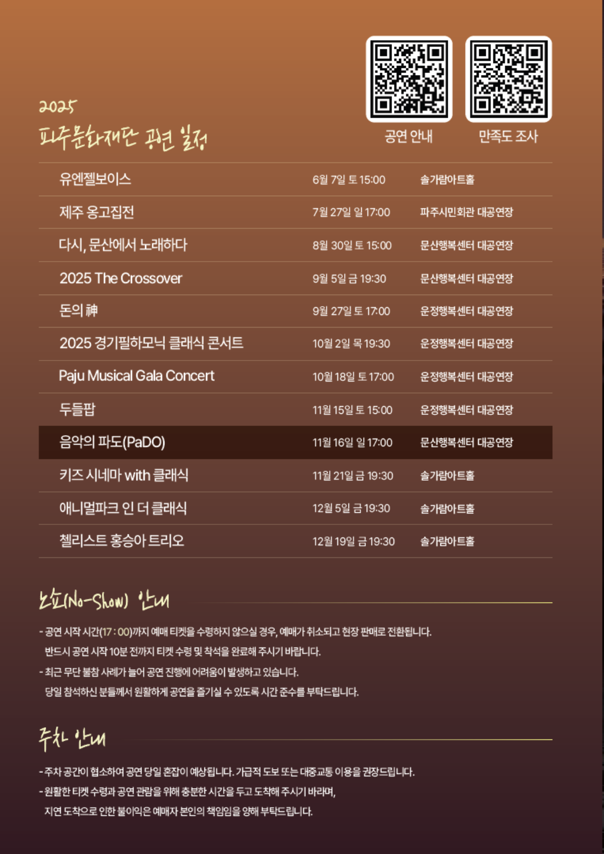 *주차 공간이 협소하여, 공연 당일 주차 혼잡이 예상됩니다.