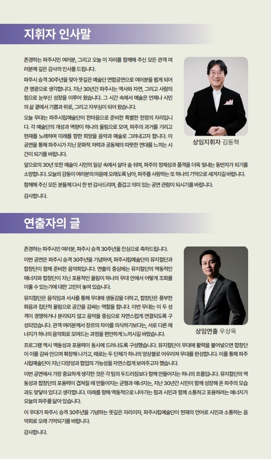 [대관] <파주시 승격 30주년 기념 콘서트> 우리가 함께 만든 30년, 파주시 리스트 이미지